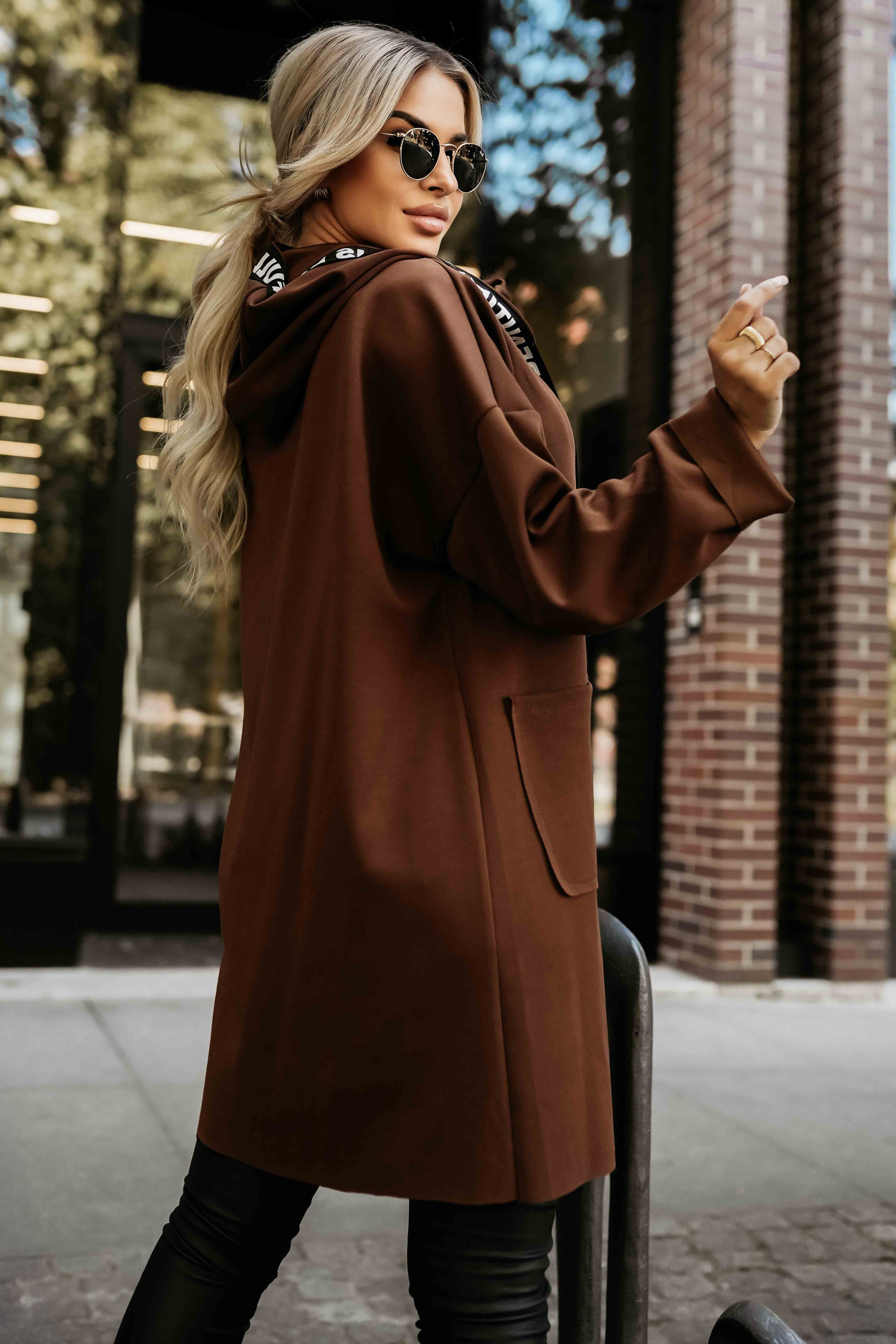 - ✅ madingas paltas su gobtuvu ir užrašais